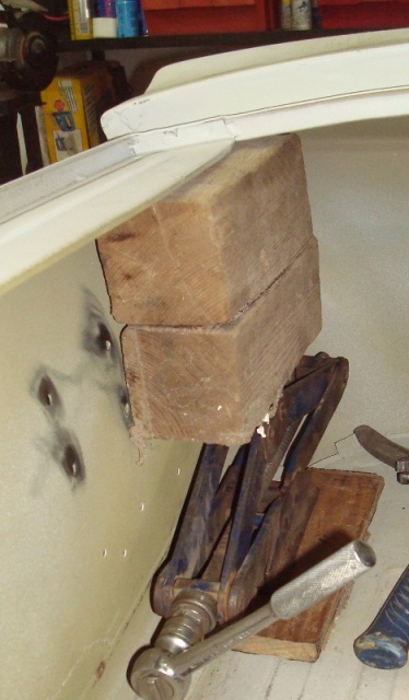Note the square holes in the floor that will accommodate the captive nuts used to hold the pedal.