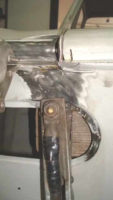 An often overlooked part of the car are the hinges, of which the car has got 8. Non of them has been serviced int he last 60 years, so they do get rusty, especially the boot hinge. But you will not notice it, and you have a large leaver. The force will dissipate into the boot frame, which will gradually weaken and finally crack, letting the water in which will speed up further cracking. Eventually the whole thing comes off as it has happened with this car. Now all 8 hinges have been disassembled, cleaned and greased. The offending boot-hinge had to be opened with an air chisel, a real butchers toy.