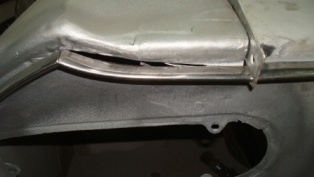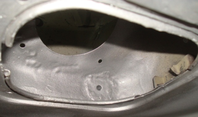 It was bad enough the the whole filler cage came loose from the wing. After I re-welded it properly I realized why this was premature. If you look at the center of the image you see a shine put, that is where tank filler drain is supposed to be, yeas a hoe, but look, there si no hole at all