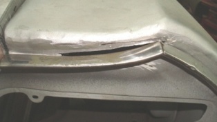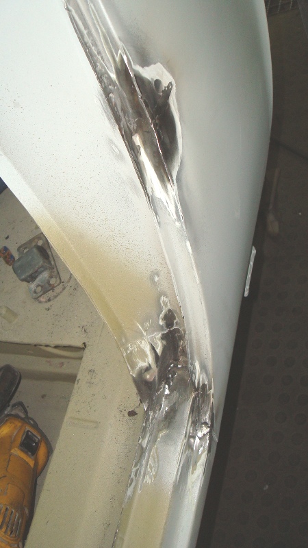 But now I can to deal with he shape of the llip of the bootlid which also had taken a knock. A few cuts wiht the grinder will allow to reshapoe this again.