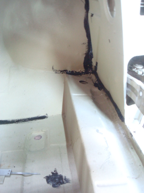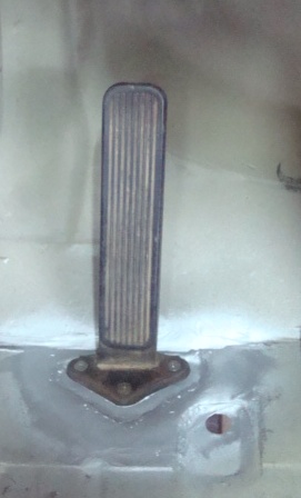 The floor looks all very happy, neat strong and clean.. but stop... where will the throttle pedal go to ? Unlike the Beetle or the Porsche it is not hanging from the top, but mounted on the floor.