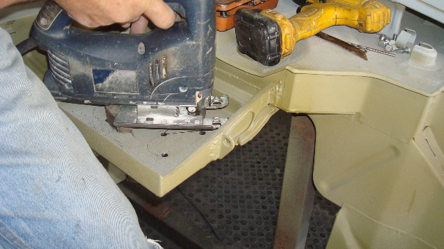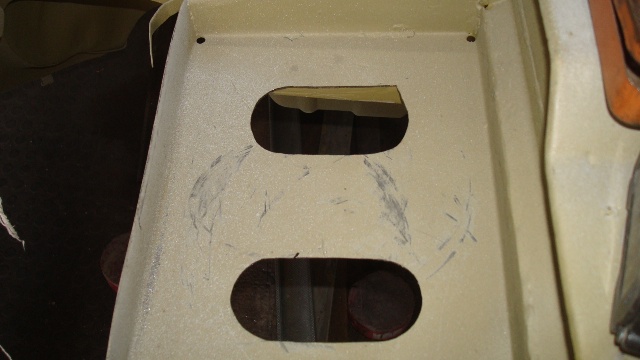 The battery tray was rebuild very solidly, but with a solid floor, which did not look nice. To make the cutouts with the jigsaw was however a bit tricky.